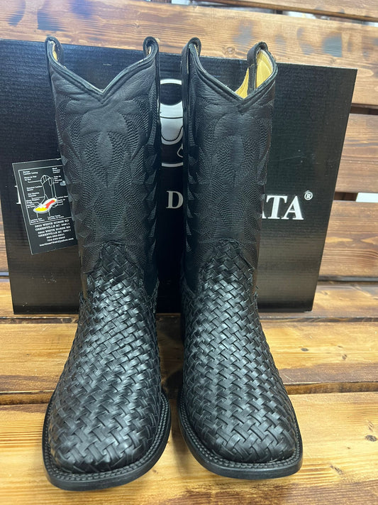 BOTA AZTECA PELO DE RES COLOR NEGRO HORMA BULL DOG SUELA DE CUERO